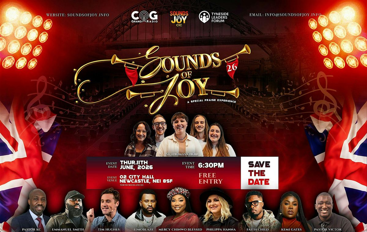 Sounds of Joy is the flagship event, the Sounds of Joy Worship Experience, is an annual gathering held in Newcastle upon Tyne.