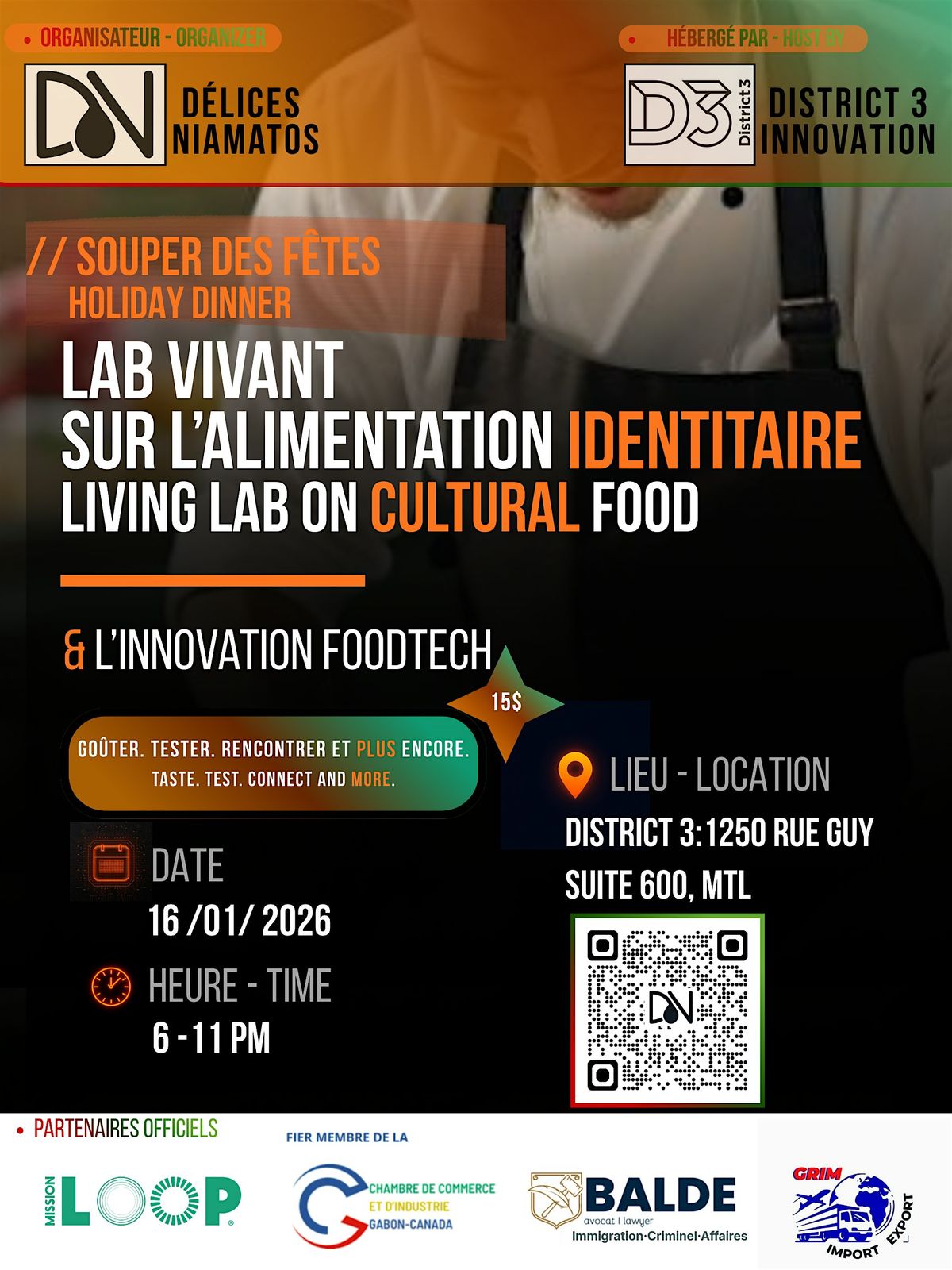 Viens célébrer la fin d’année lors du Souper des fêtes de Délices Niamatos, en partenariat avec District 3 de l’Université Concordia et l’UQAM.