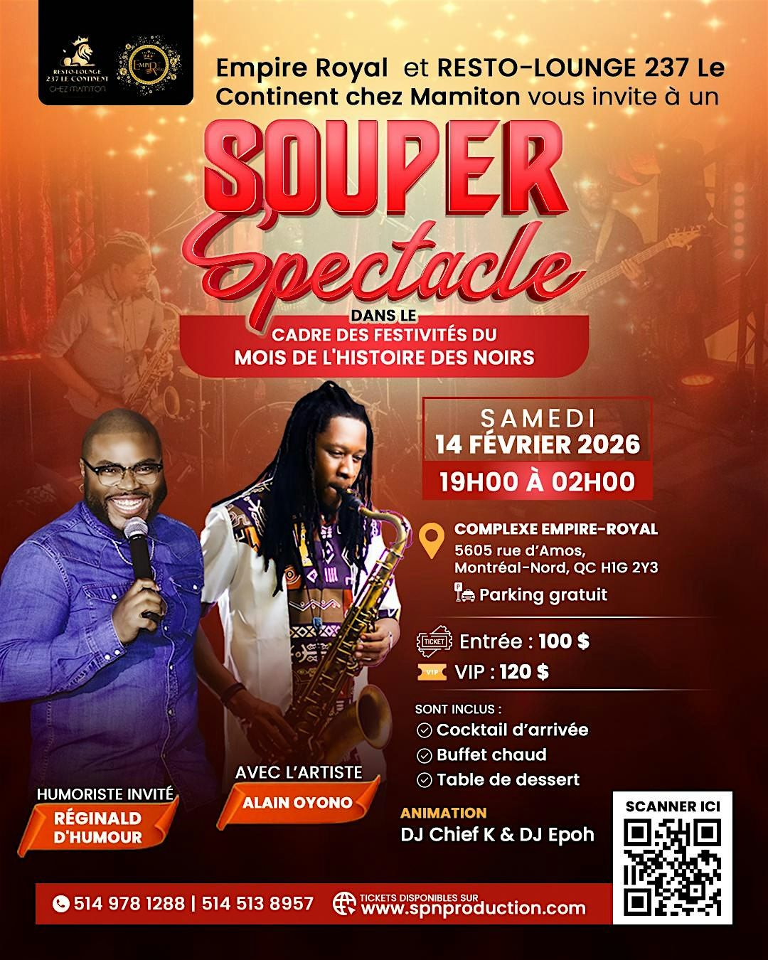 Dans le cadre du mois de l'histoire des Noirs, venez célébrer la culture noire avec humour et musique. Empire Royal vous accueille dans un cadre somptueux et vous offrira une soirée drôle, chaleureuse, attrayante. Plaisir et fun assurés!