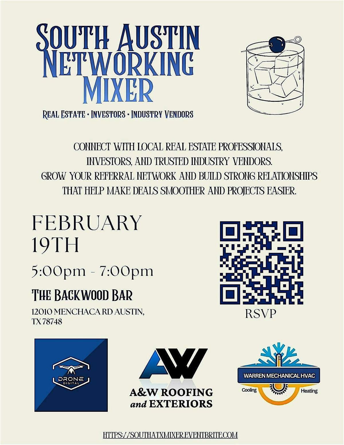The South Austin Networking Mixer is all about good vibes and meaningful connections within the real estate and construction community. Hosted at The Backwoods Bar, this in-person event brings together real estate professionals, investors, and trusted industry vendors in a relaxed setting where networking doesn’t feel forced.