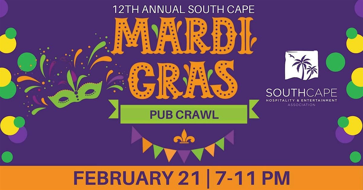 Get ready for the 12th Annual South Cape Mardi Gras Pub Crawl on Saturday, February 21 from 7–11 PM! 🎭🍹
