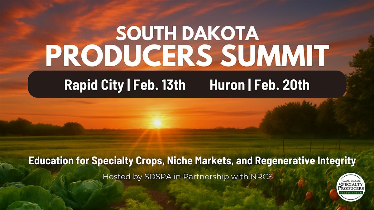 The South Dakota Producers Summit provides education for specialty crops, niche markets and regenerative integrity. Join us Feb. 13, 2026 at DoubleTree by Hilton Rapid City Downtown Convention Center.