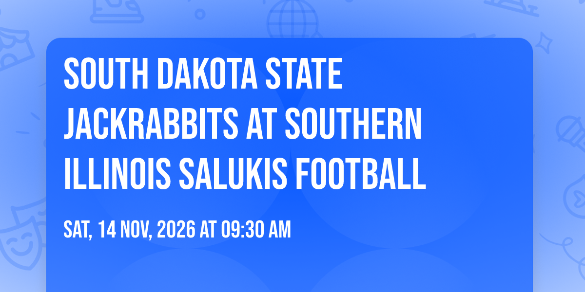 📍 Location: 37.71, -89.22🎉 Welcome to South Dakota State Jackrabbits at Southern Illinois Salukis Football, where dreams come alive and possibilities are endless! 🏛️ Join us at Saluki Stadium in the heart of Carbondale, IL for an event that defies expectations. 📅 On November 14th, 2026 at 09:30 AM, be part of something truly extraordinary as we bring together innovation, entertainment, and pure magic. ✨ Every aspect has been carefully designed to ensure an unforgettable experience for all our guests. Whether you're seeking adventure, inspiration, or simply a break from the ordinary, this event promises to deliver beyond your wildest dreams. 🎊 Prepare for a journey into the extraordinary!