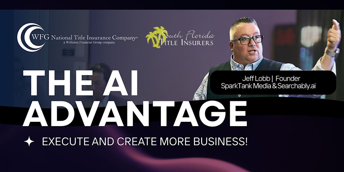 Join us for a high-energy session featuring Jeff Lobb, Founder of SparkTank Media & Searchably.ai, brought to you by South Florida Title Insurers and WFG National Title Insurance Company.