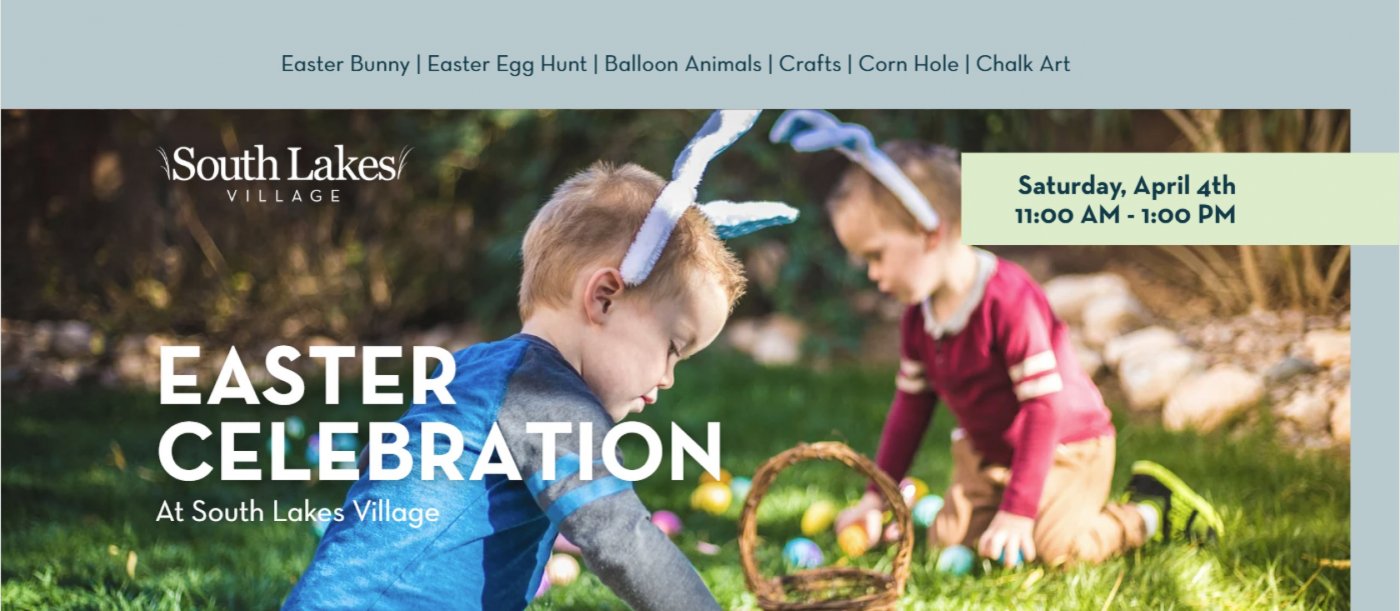 RSVP here: https://www.eventbrite.com/e/south-lakes-village-easter-celebration-tickets-1984920420410