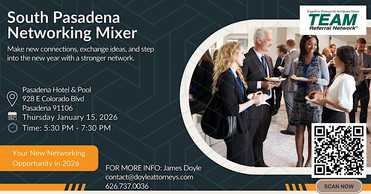 Join South Pasadena Connections, a chapter of TEAM Referral Network, for an evening of meaningful business connections in a casual mixer environment.