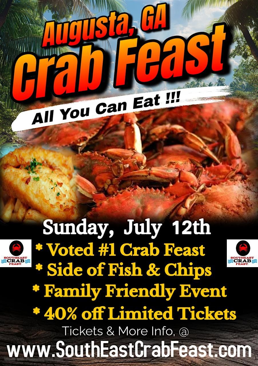 ALL YOU CAN EAT BLUE CRABS!!!! Please join us for the SouthEast Crab Feast Fall event in Augusta, GA on Sunday, July 12th. This event offers the Low Country Coastal Heritage of outdoor cooking of fresh seafood. This highly anticipated event will offer ALL YOU CAN EAT fresh Blue Crabs, one side of Fish & Chips, Music and a Family Friendly Environment for the entire family.