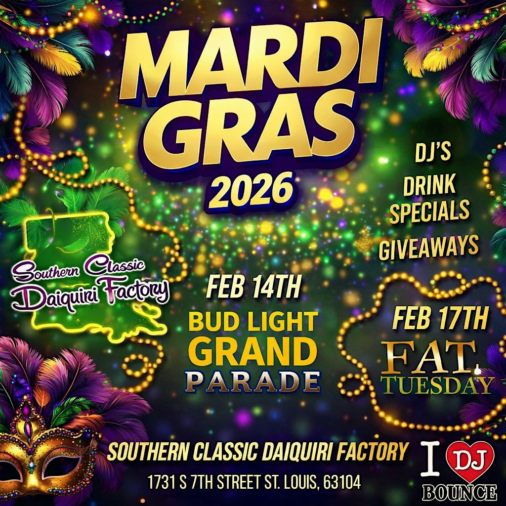 Southern Classic Daiquiri Factory Mardi Gras 2k26! This is the place to be, where good vibes, 🔥 food and 🔥 drinks. Our 1st Mardi Gras celebration in the heart of Soulard — and it’s already the talk of the city.
