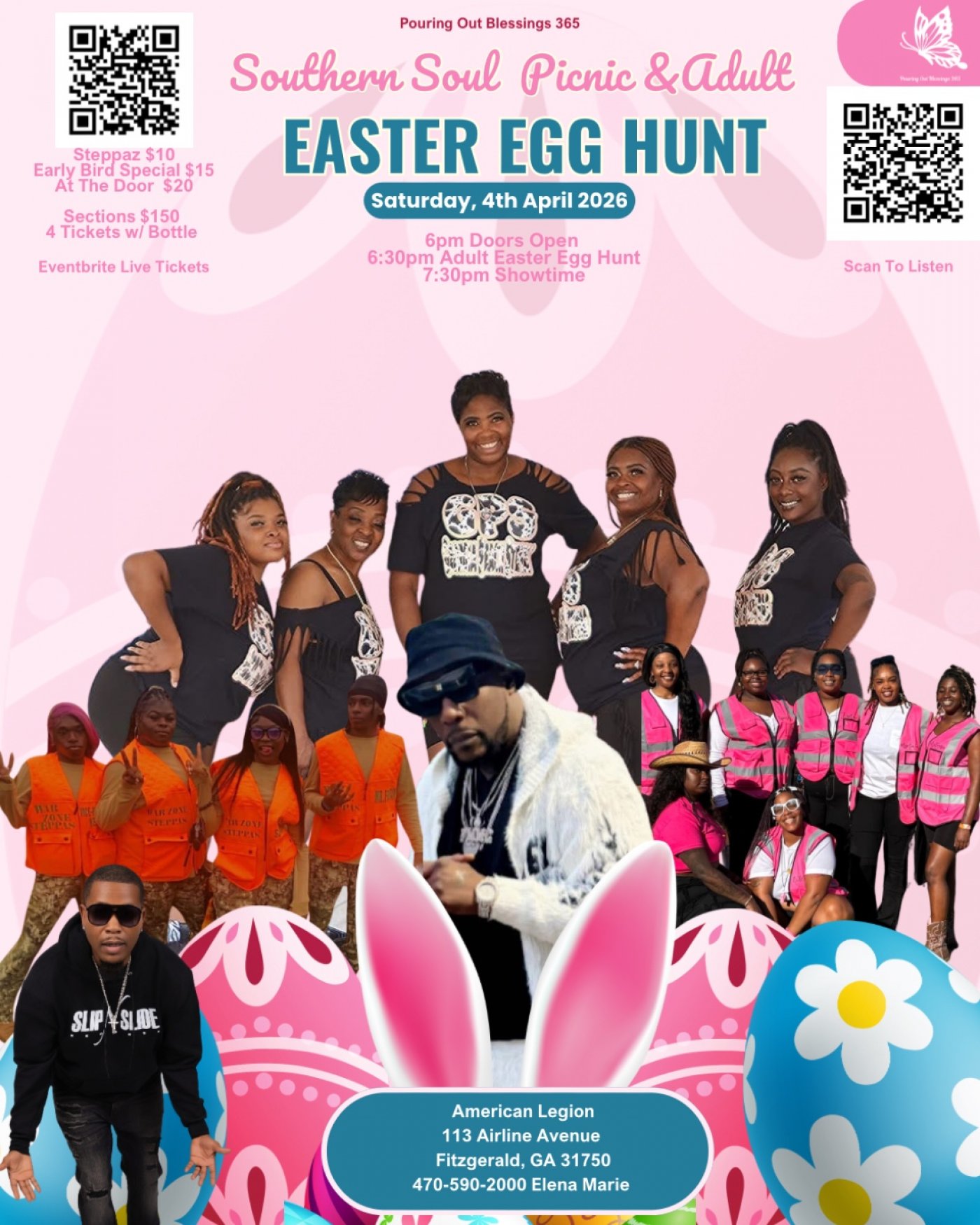Get ready for a fun-filled day with the Southern Soul Picnic & Easter Egg Hunt! Join us in person for a lively afternoon of delicious food, great music, and exciting egg hunting adventures.
