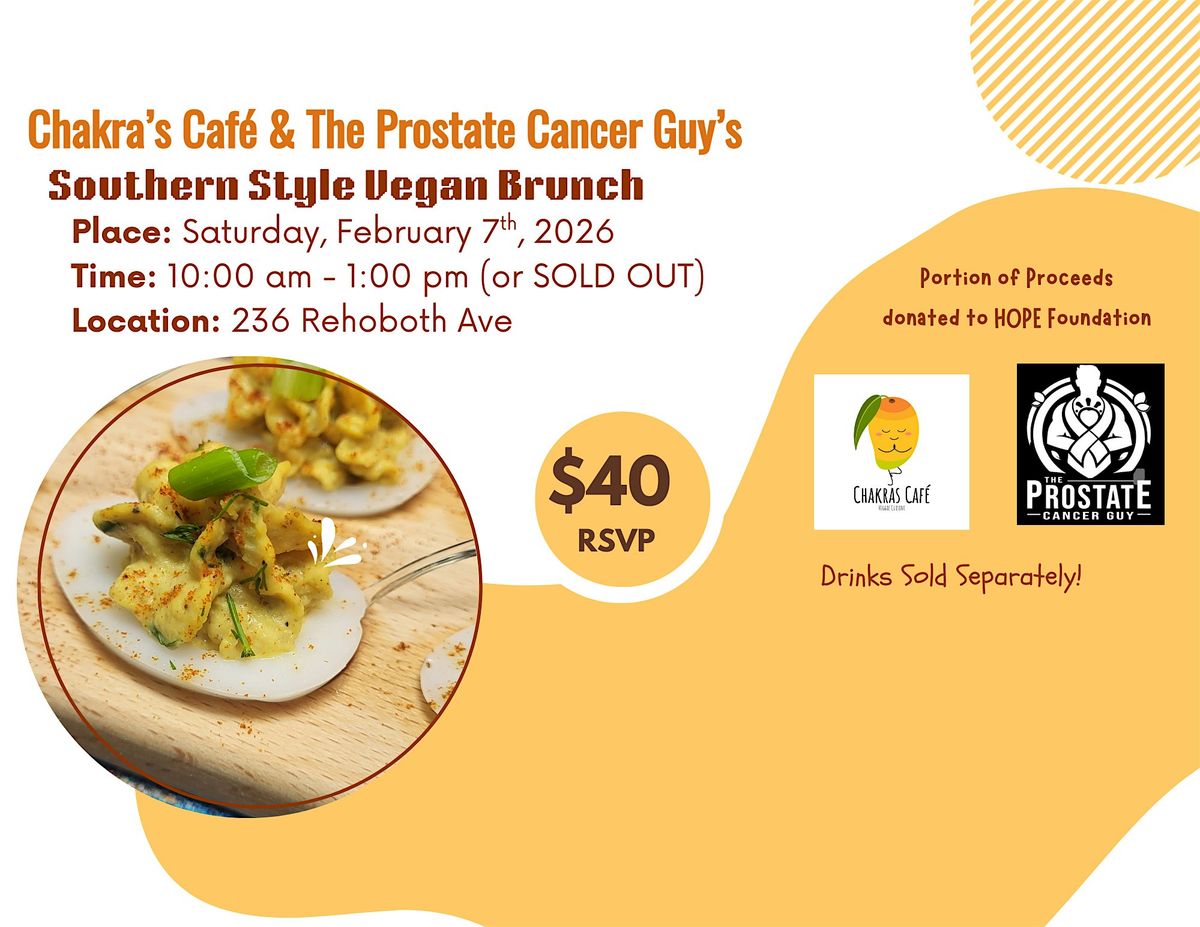 Chakra's Café and The Prostate Cancer Guy have teamed up to bring a Southern Style Vegan Brunch to Sussex County!