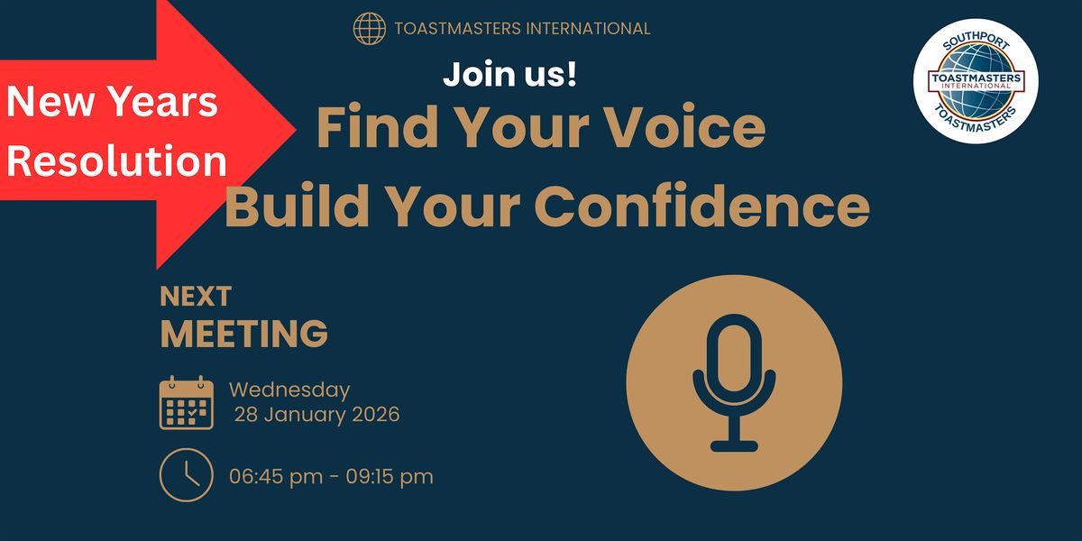 Join us for our first Southport Toastmasters Meeting of the Year!!!Achieve your new years resolution to build your confidence and become an