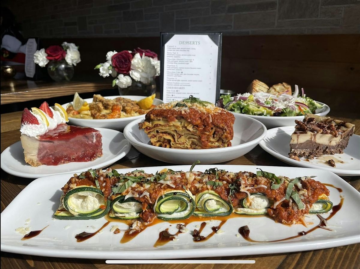 We'll start at a cozy vegan Italian spot, and you'll soon see why that is! We'll have a seat, share some mouth watering food, family style!