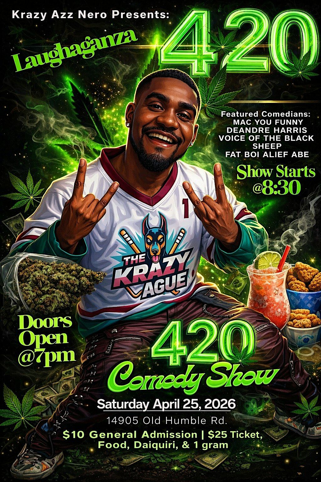 A live fun&funny 420 friendly comedy show with some of Houston wild vibing personality comediansAbout this Event