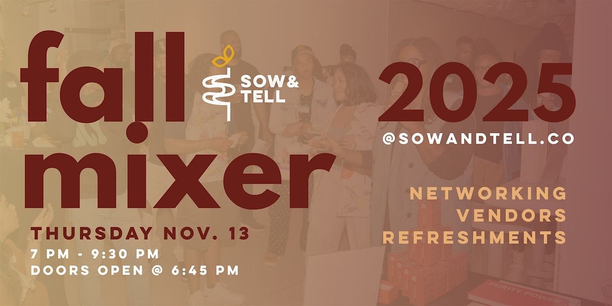 Sow and Tell's Annual Fall Mixer is happening once again! We are creating a space that empowers, inspires, and celebrates Christian professionals, entrepreneurs, and creatives.