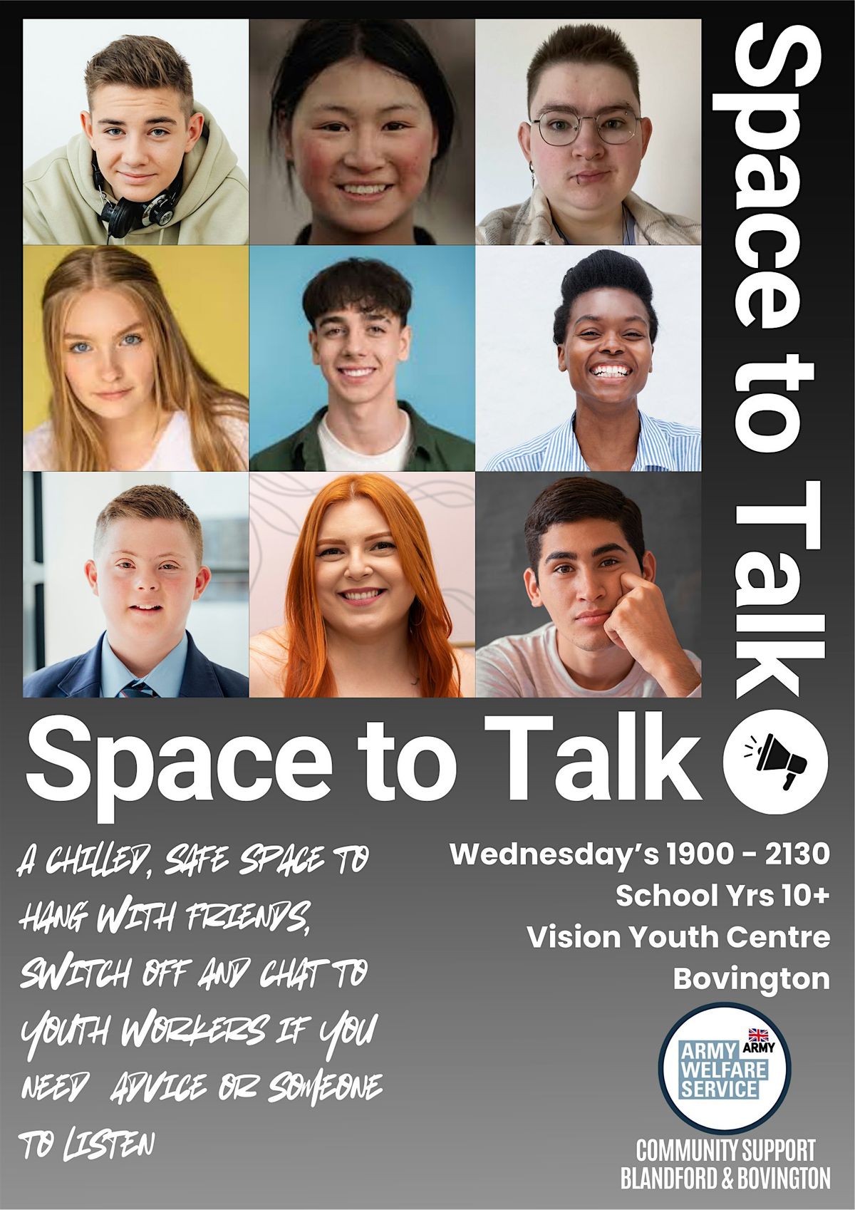Space to Talk - Bovington is a service strictly for young people in school years 10+ and is a quality youth service overseen by JNC qualified youth work practitioners. Sessions incorporate elements of the national youth work curriculum as set out by the National Youth Agency and can focus on issues such as health and wellbeing, citizenship, safe relationships, economic wellbeing and creativity and fun. Youth work is a distinct educational process adapted across a variety of settings to support a young person’s personal, social and educational development. For more information on the youth work process, visit NYA.