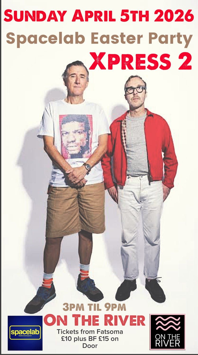 Spacelab are delighted to invite Xpress 2 AKA Rocky & Diesel to On The River on Easter Sunday 5th April 2026 alongside the resident DJs and Richie Moulton to host two rooms of music 3pm til 9pm.Xpress 2 are Darren Rock & Darren House who adopted the name from Terry Farley was inspired by the name S 'Express. Their debut track 'Muzik' and follow up 'London Xpress' have become house music anthems both early Junior Boys Own releases. In the early days Ashley Beedle was with Xpress 2 but left to pursue a solo career.