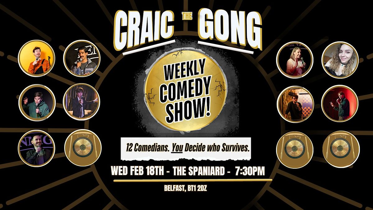 Join us upstairs at The Spaniard for Craic the Gong—the wildest comedy night in town! Watch 12 comedians take their shot at making you laugh, but there’s a twist: the audience holds all the power.