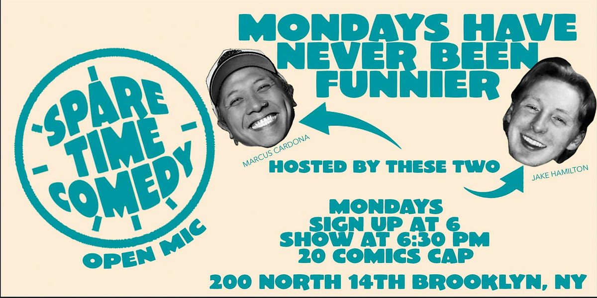 Comedian and producer Marcus Cardona alongside cohost Jake Hamilton present Spare Time Comedy Open Mic