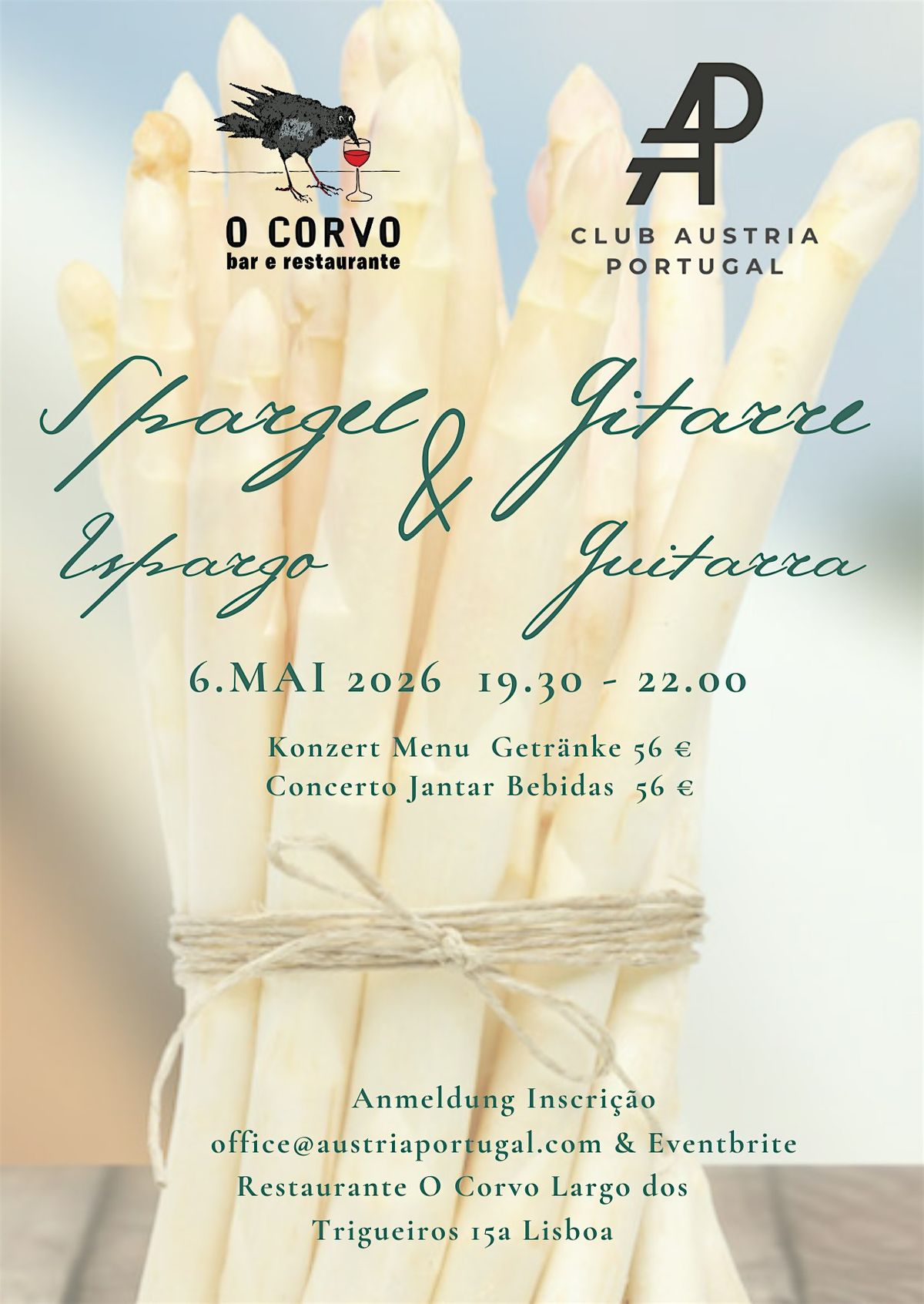 Menu mit weissem Spargel und Gitarren Konzert Jantar com Espargo brancos e concerto de guitarra