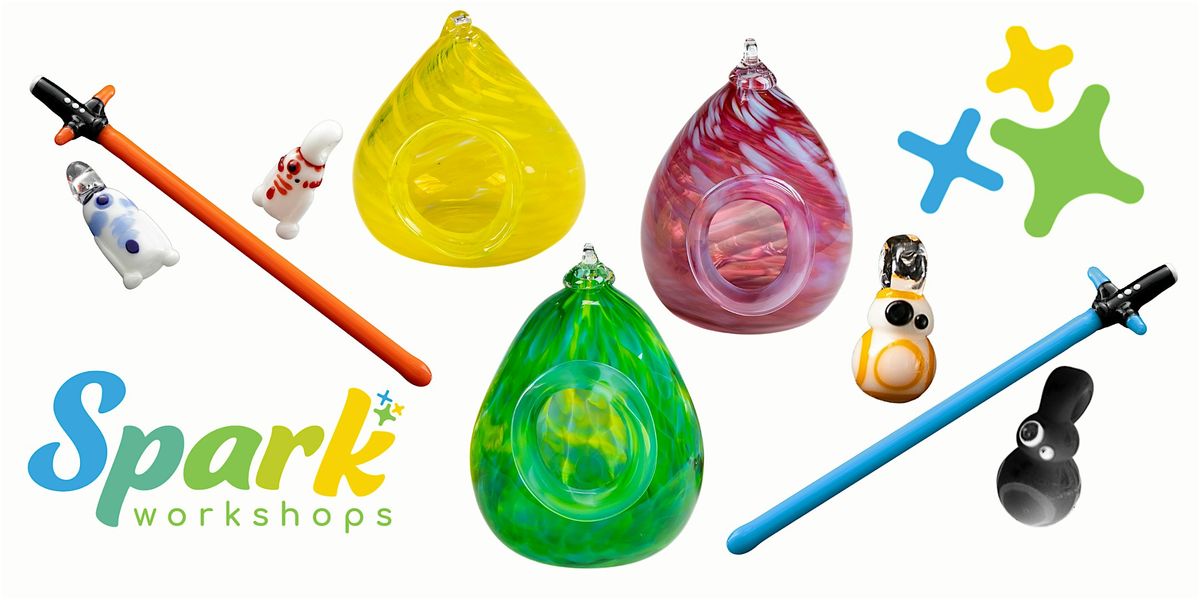 This is the best way to experience the joy of working with glass! Projects vary and may be seasonally themed. You pick your colors and manipulate the glass to create your one-of-a-kind glass treasure.