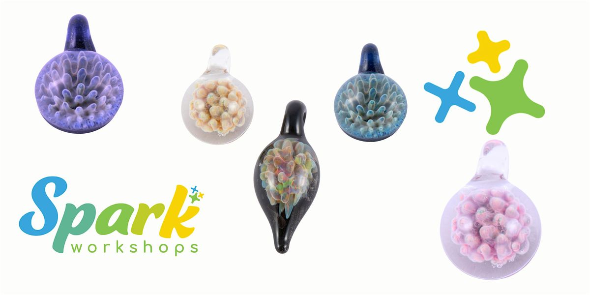 Flame Working: When you are working in the flame working studio, you are working with colored and clear glass rods or tubes in front of an open, gas-fueled torch. You will be given the opportunity to melt the glass as well as use tools and gravity to shape your item. SiNaCa Studios teaches with two different types of glass in our flame working studio. One is a soft soda-lime based glass that is used primarily for our bead making classes. The other is a hard glass called borosilicate, sometimes referred to as pyrex. It requires a much hotter flame to work, but can be used to create more complex sculptural and blown work.
