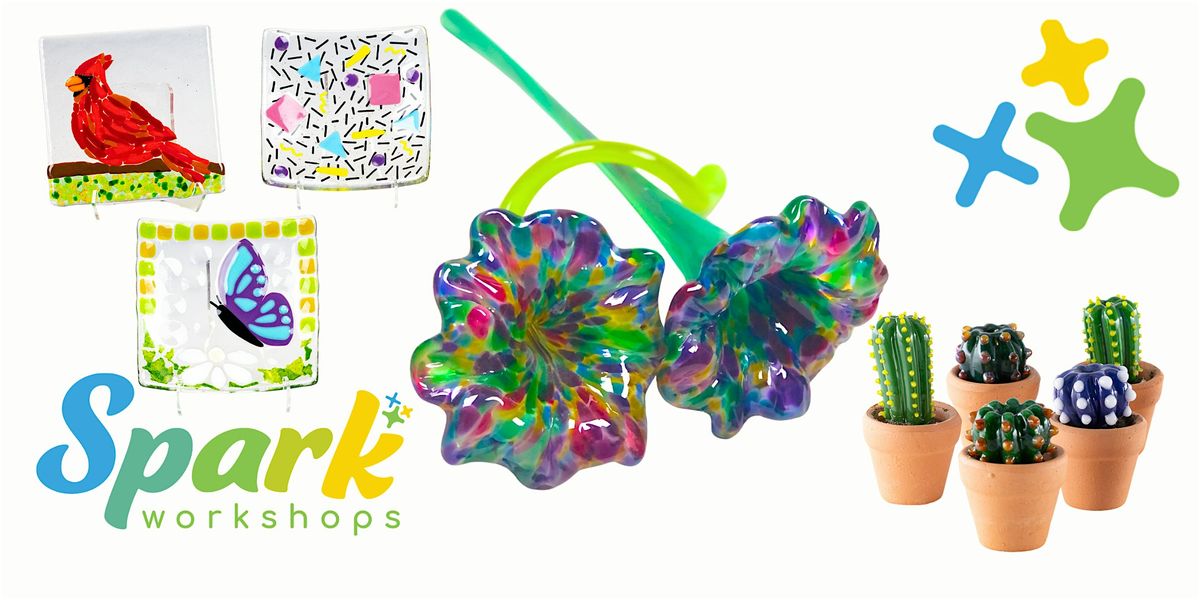 This is the best way to experience the joy of working with glass! Projects vary and may be seasonally themed. You pick your colors and manipulate the glass to create your one-of-a-kind glass treasure.