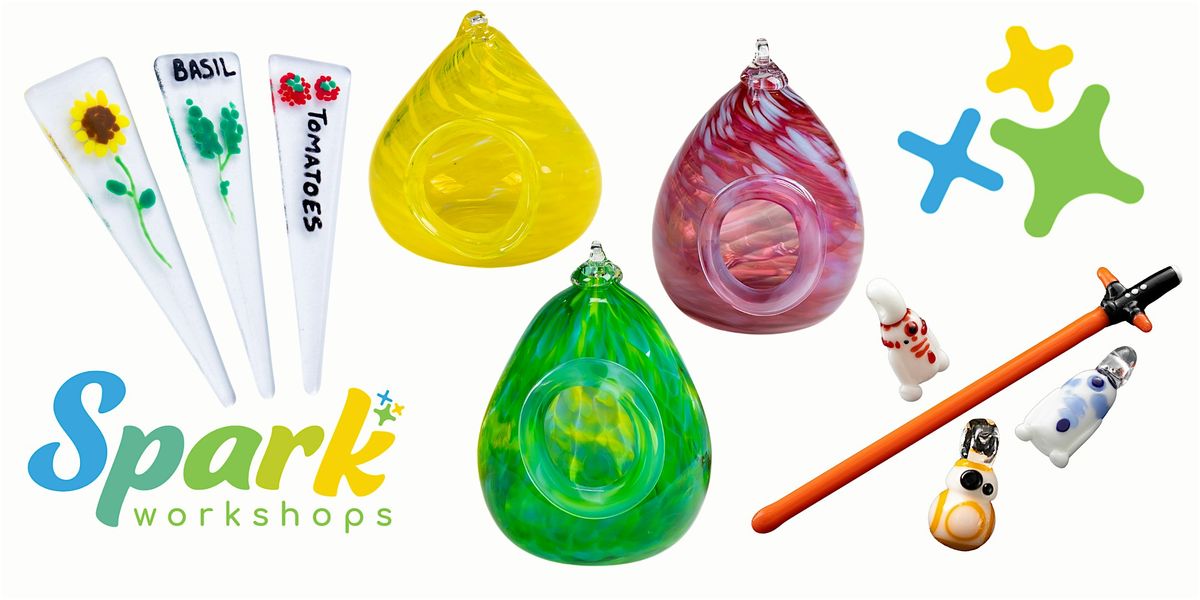 This is the best way to experience the joy of working with glass! Projects vary and may be seasonally themed. You pick your colors and manipulate the glass to create your one-of-a-kind glass treasure.