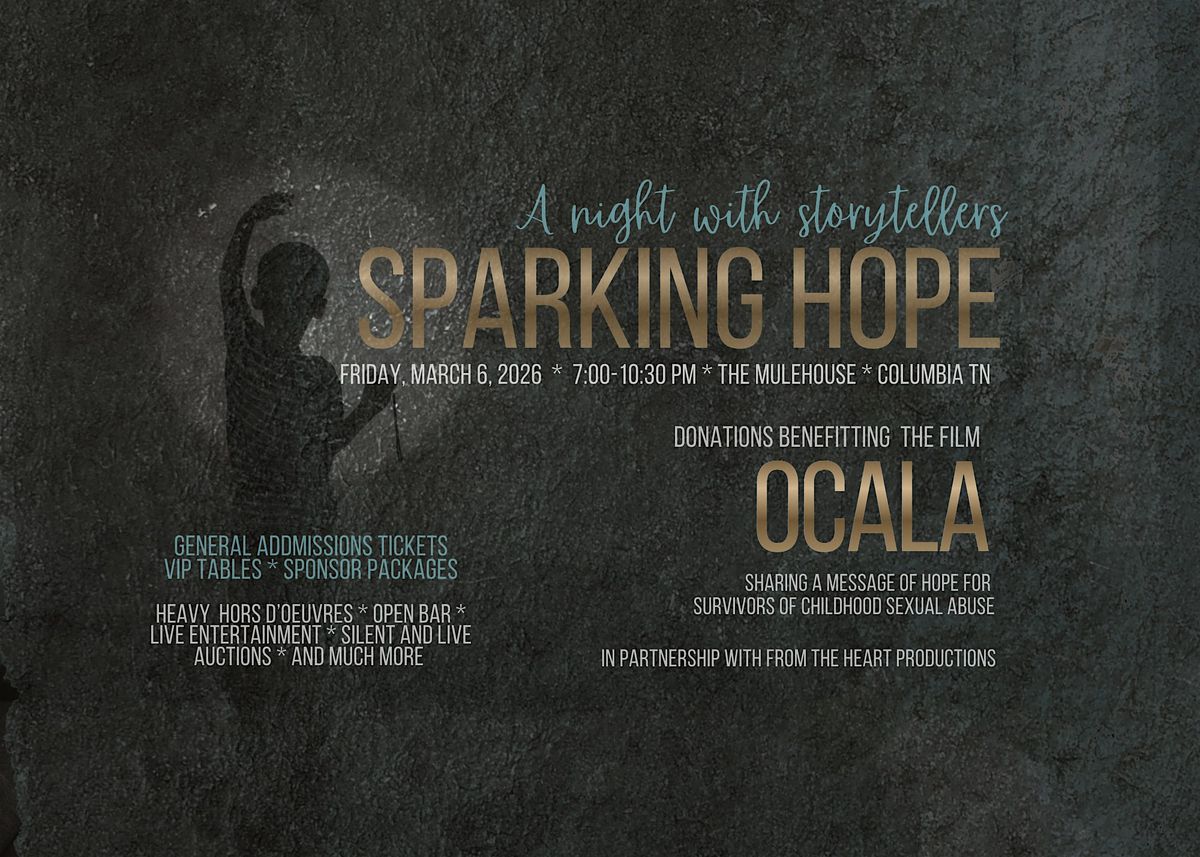 Get ready for an evening full of hope, intentionally centered around the captivating art of storytelling. Linking arms and hearts with other impact partners, specialty silent and live auctions and donations from the night will play a crucial role in bringing the feature film, Ocala, to life. Ocala brings an important, powerful message of freedom to survivors of childhood sexual abuse and all donations will directly impact the film's making, success and reach.