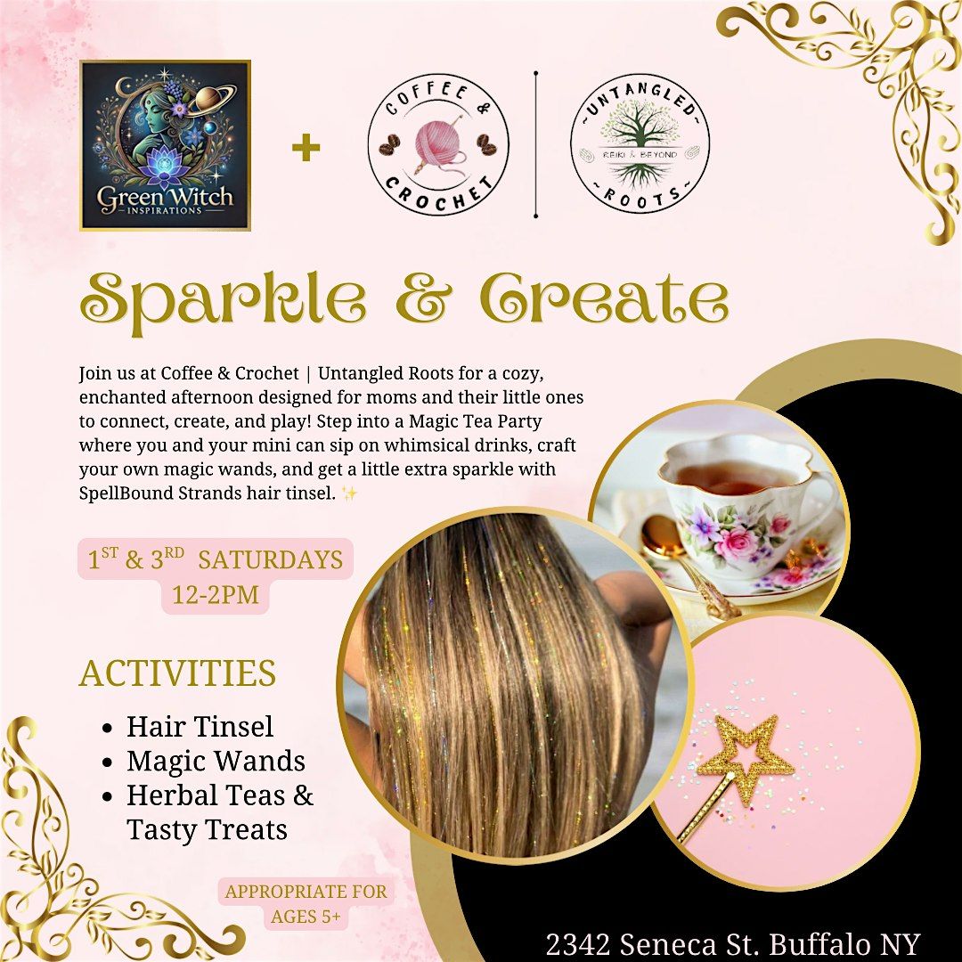 Join us at Coffee & Crochet | Untangled Roots for a cozy, enchanted afternoon designed for moms and their little ones to connect, create, and play. Step into a Magic Tea Party where you and your mini can sip on whimsical drinks, craft your own magic wands, and get a little extra sparkle with hair tinsel (Spellbound Strands ✨).