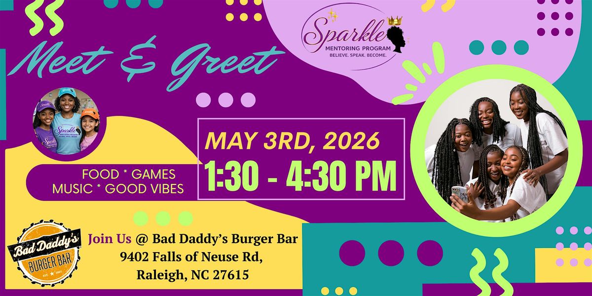 Hey there! Join us in person for our very first Meet and Greet. It's the perfect opportunity for parents, prospective mentors, mentees/volunteers, and sponsors to learn about the Sparkle Mentoring Program. This is the time to connect, chat, and get inspired by current mentors, mentees & volunteers. There will be food, games and great music! Whether you're new or returning, come share stories, ask questions, and make awesome connections in an upbeat and friendly environment. We can't wait to see the sparks happen!