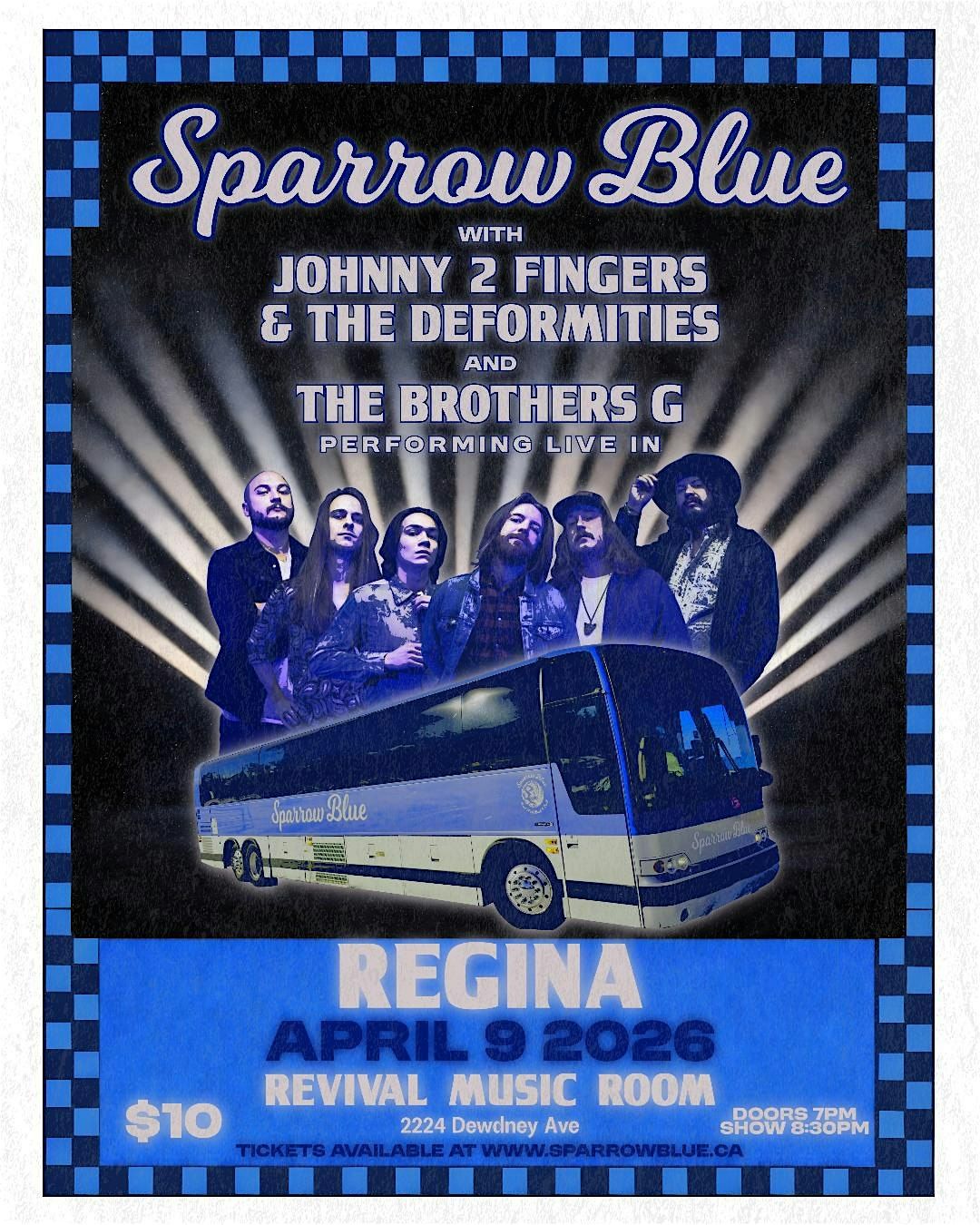 SPARROW BLUE w/ JOHNNY 2 FINGERS & THE BROTHERS G LIVE IN REGINA @ THE REVIVAL MUSIC ROOM, APRIL 9th, 2026DOORS: 7PM SHOW: 830PM