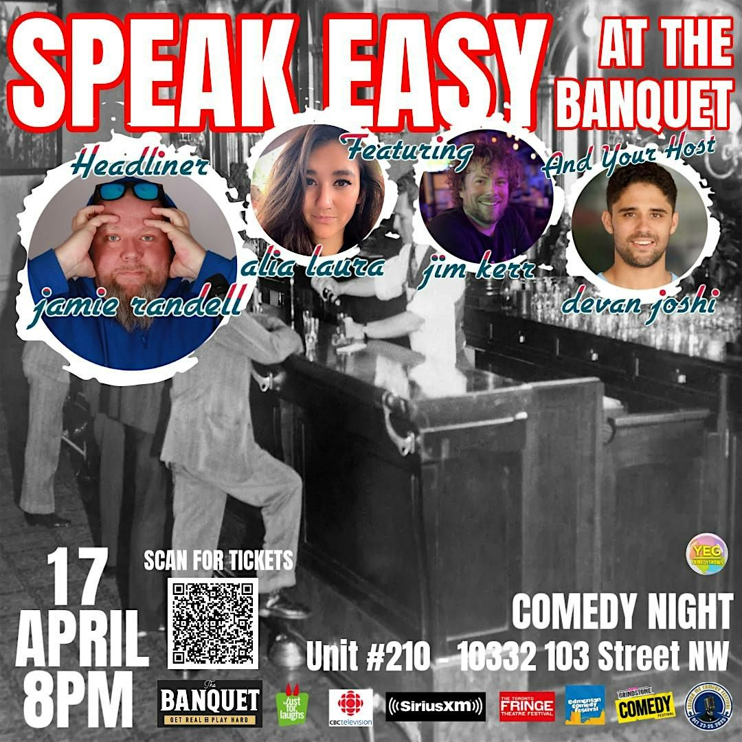 Get ready for a night of fun and laughter at SPEAK EASY AT THE BANQUET! It's the perfect chance to catch Edmonton's hottest comedians and enjoy a relaxed vibe with great company. Great Food and Brews and Even Better Laughs!!!
