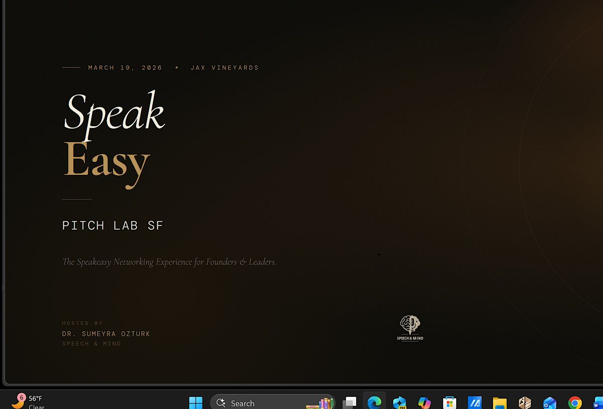 Speak Easy: Pitch Lab SF is a hands-on evening for founders and ambitious professionals who want to sharpen how they pitch themselves, their ideas, or their next big move.