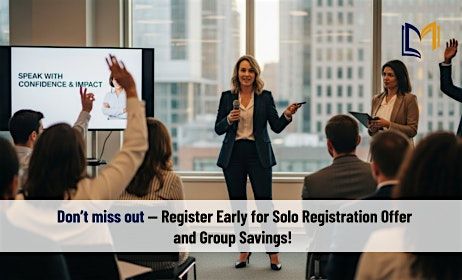 Public speaking ranks as one of the top fears globally, often surpassing common phobias like heights or spiders. But gaining control over this fear can dramatically boost your confidence and advance your career. This interactive workshop is designed to help you shed stage fright, speak with poise, and deliver powerful presentations that leave a lasting impact. You'll build the skills and mindset to engage any audience with clarity and confidence.