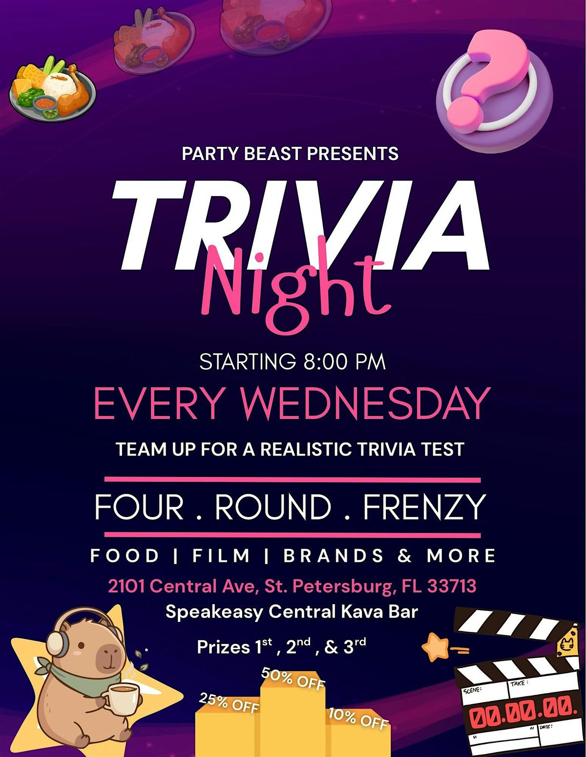 Think you’re the smartest one at the table? Prove it.Every Wednesday night, we’re turning Speakeasy Central Kava Bar into the ultimate battleground for brains, bragging rights, and prizes. Grab your crew, sip something smooth, and get ready for a 4-round trivia frenzy that’ll test everything from your pop culture memory to your random fact arsenal.