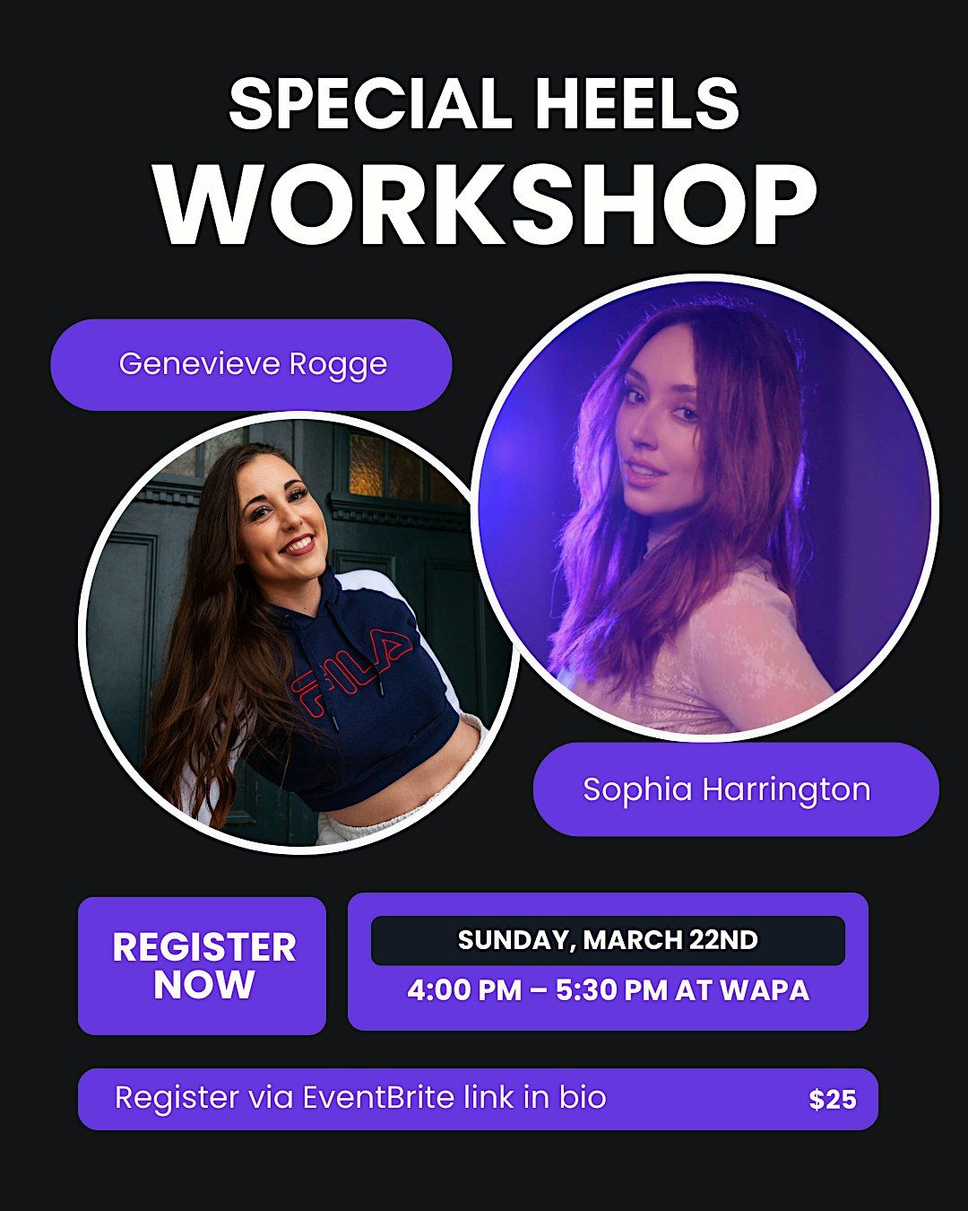 A heels workshop with the incredible Sophia Harrington and Canned Heat founder Genevieve Rogge.