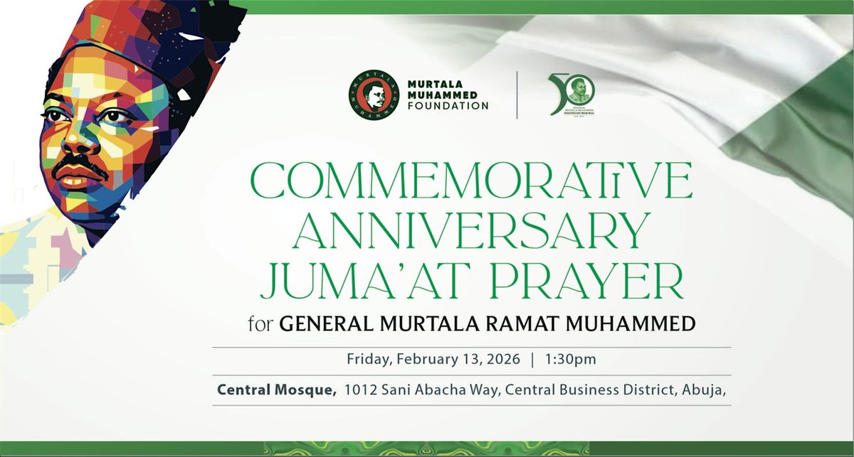A special Jumaβat service in honour of the late General Murtala Muhammed will be held on Friday, February 13, 2026, at the Abuja National Mosque.