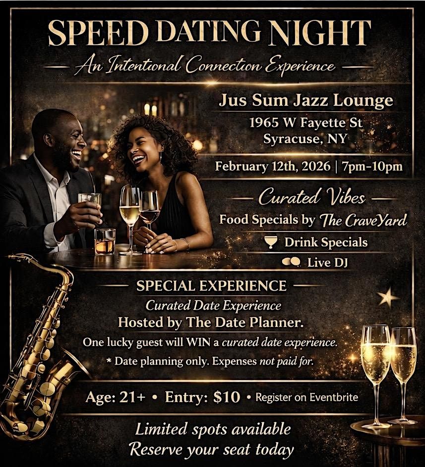 An elevated speed dating experience with live DJ, food & drink specials, and a curated date giveaway. Feb 12 at Jus Sum Jazz Lounge.