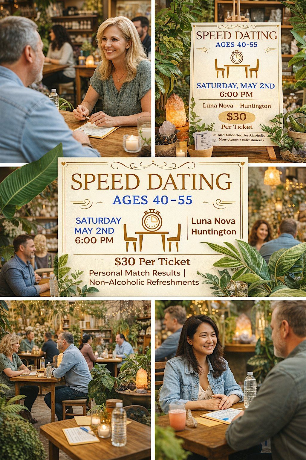 LUNA NOVA is taking mingling back to it's original form: meeting in person rather than through a screen. We're inviting men and women, ages 40-55 for an evening of real connections, laughter, and meaningful conversations. No apps. No swiping. Just good old fashioned dating fun, only faster!