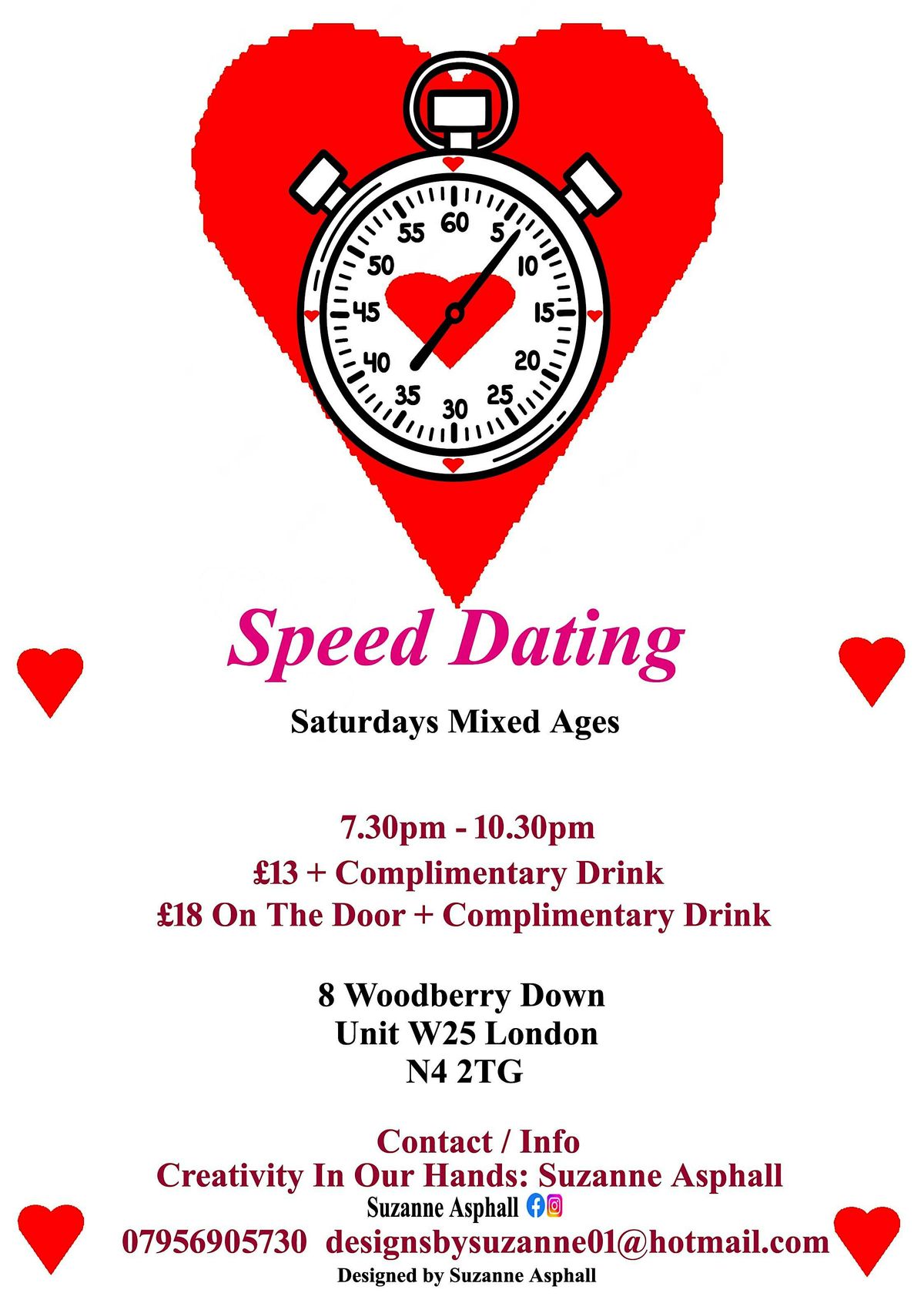 Speed Dating: It’s time for love. The experience, of meeting someone new, to form a connection. Taking place at Creativity In Our Hands: Suzanne Asphall. 8 Woodberry Down, Unit 25,LondonN4 2TG.