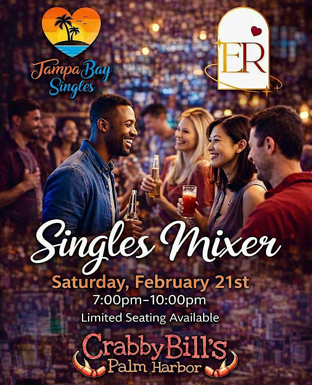 We’re bringing Tampa Bay singles together at Crabby Bill’s for a fun, in-person Speed Dating, easy conversation, and a relaxed vibe that feels more like a night out than an “event.” Come solo or bring a friend. Either way, you’ll be in a room full of people who are open to connecting and enjoying themselves.