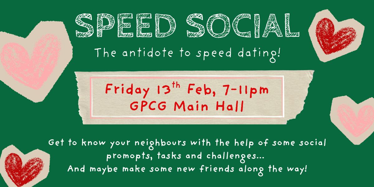 We at GPCG and A Little Cafe are all about encouraging community connections and widening our friendship circles. So pop to GPCG to meet your locals through a series of fun social games, challenges and conversation prompts - a fun new take on speed dating without the romantic pressures!
