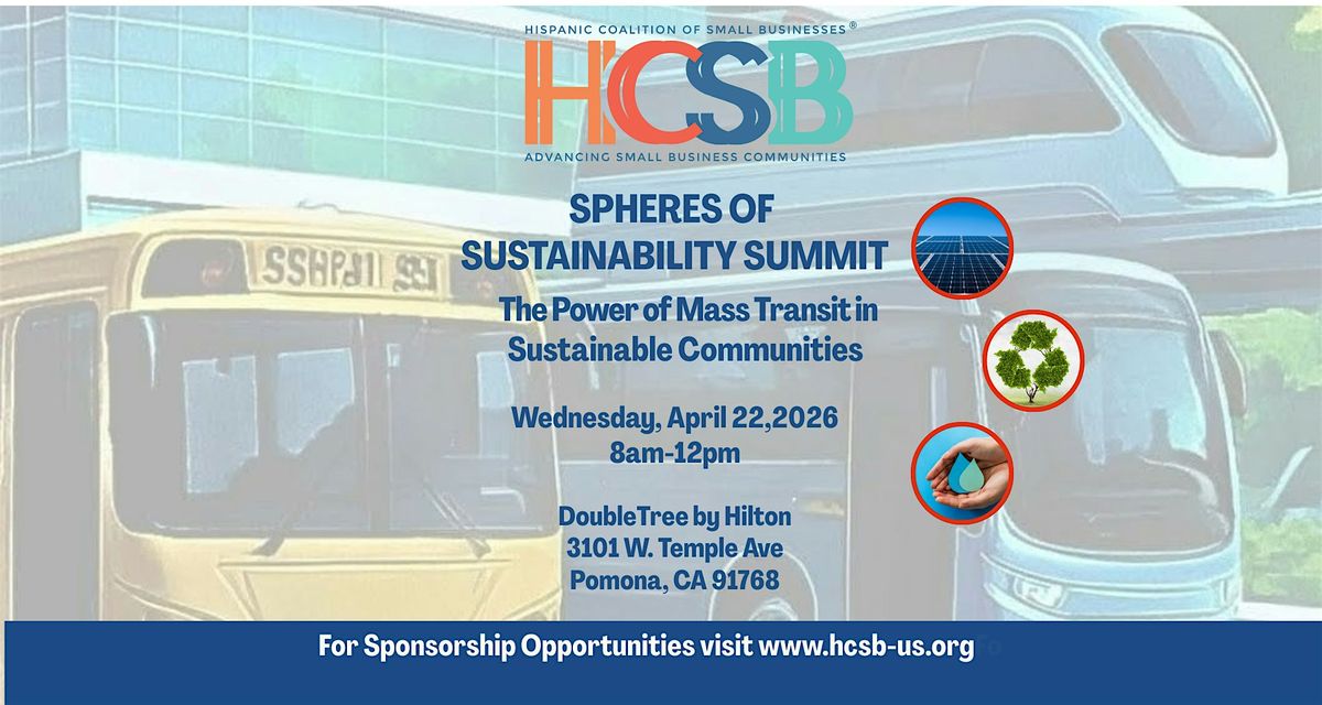 Join the Hispanic Coalition of Small Businesses (HCSB) on Earth Day, April 22, 2026, at the DoubleTree by Hilton Pomona for a high-impact Sustainability Summit focused on sustainable mass transit, workforce pathways, and small business opportunity.