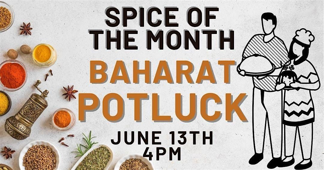 Pick up this month's spice, baharat, at the front desk with an informational packet, and try out new recipes with it! Bring food you have cooked with the spice for others to try at the meeting.