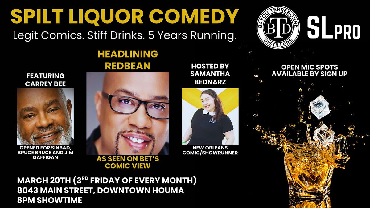 Spilt Liquor Comedy returns Friday, March 20th at Bayou Terrebonne Distillers.