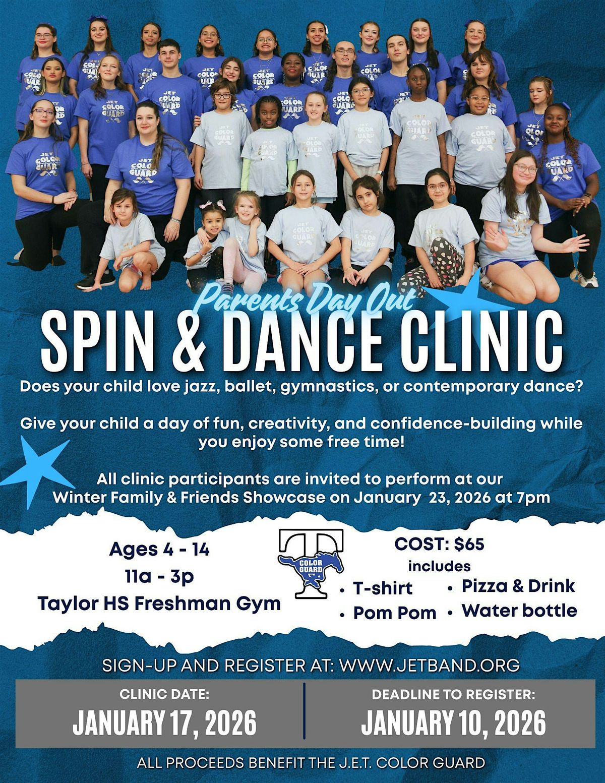 Does your child love to move? Join the state-winning James E. Taylor High School Color Guard for an unforgettable Dance & Spin Clinic!