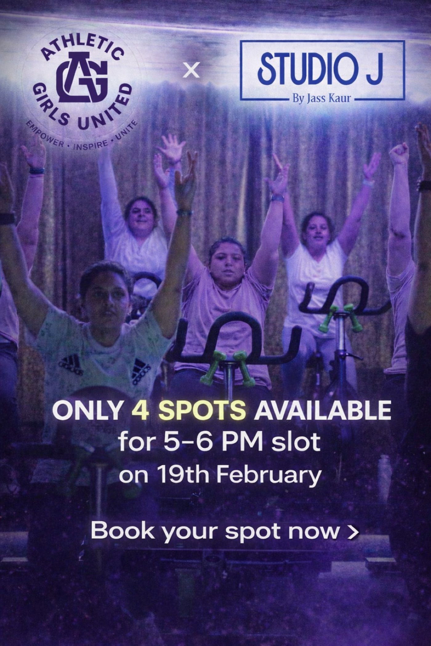 Experience the ultimate fitness revolution at the Spinning Sessions by Athletic Girls United on February 19, 2026, at 5:00 PM. Join us at Studio J by Jass Kaur, nestled in the heart of Times Square, Ahmedabad, for an electrifying fitness experience like no other.