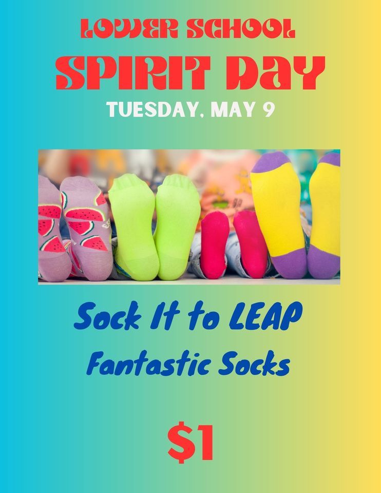 In preparation for the LEAP test, Lower School students can wear their fantastic socks for Sock it to LEAP Spirit Day. $1 contribution appreciated.