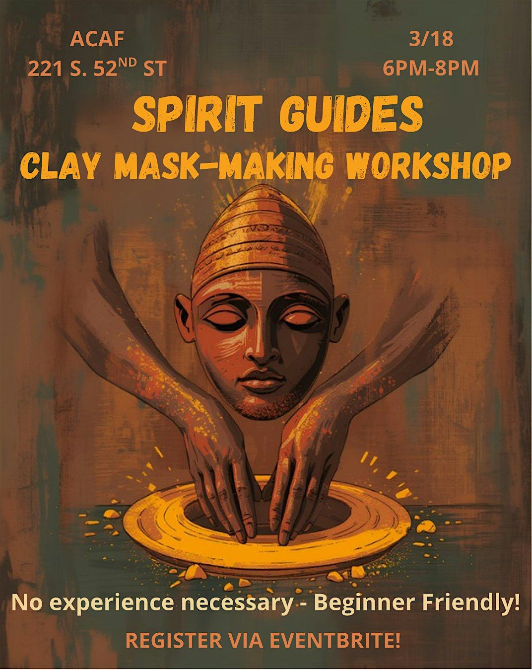 In this immersive clay workshop at ACAF in Philadelphia, participants will be introduced to a glimpse of Afro-diasporic mask histories across continents—beginning with ceremonial mask traditions of West and Central Africa, tracing their transformation through the Caribbean and South America during and after the transatlantic slave trade, and exploring how these visual languages continue to evolve in contemporary U.S. cultural practices.