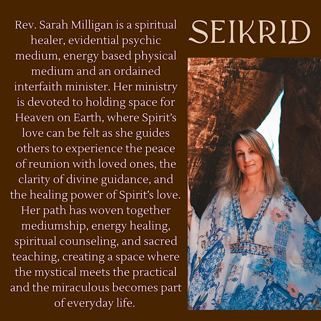 Rev. Sarah Milligan is a spiritual healer, evidential psychic medium, energy based physical medium and an ordained interfaith minister. Her ministry is devoted to holding space for Heaven on Earth, where Spirit’s love can be felt as she guides others to experience the peace of reunion with loved ones, the clarity of divine guidance, and the healing power of Spirit’s love.